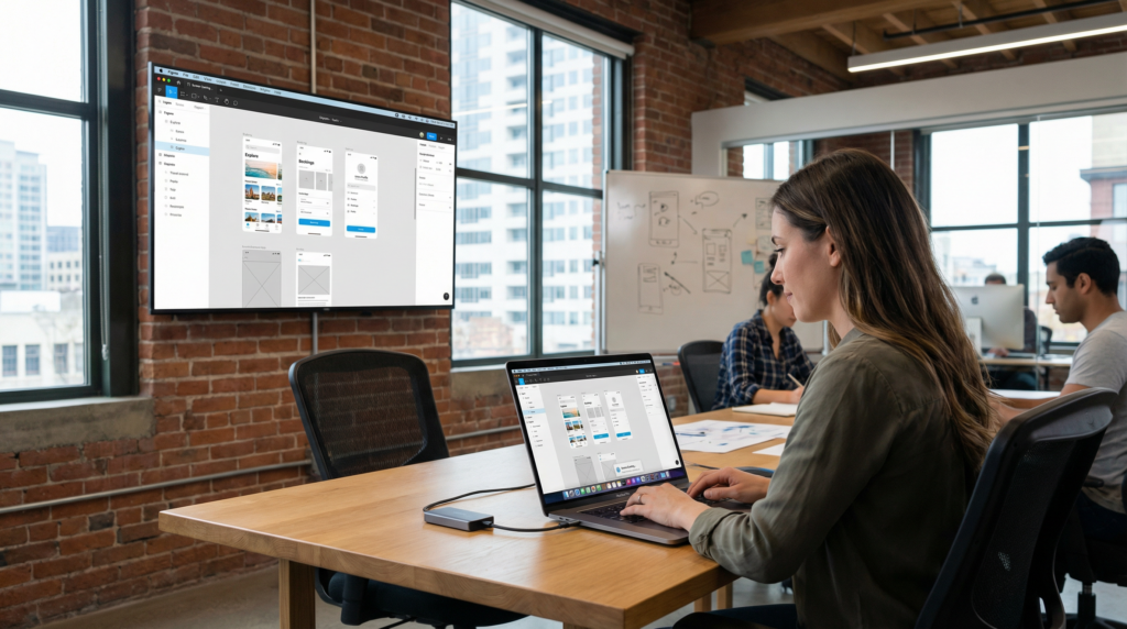 على عكس “الإرسال” - الذي لا يرسل سوى ملف فيديو معين - يتيح لك الإرسال المرسَل رؤية كل شيء، بما في ذلك التطبيقات الاحترافية مثل Figma، وأشرطة المهام، وإشعارات النظام تمامًا كما تظهر على جهاز الكمبيوتر الخاص بك.