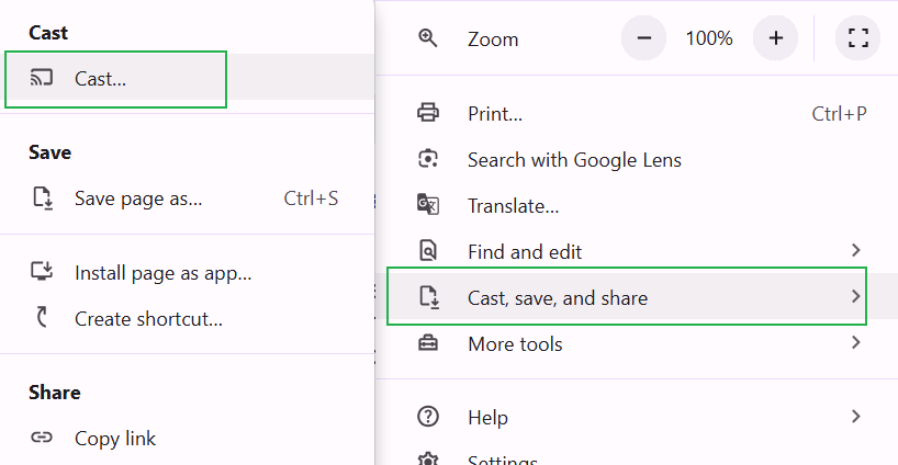مثالية لعكس محتوى متصفح معين أو سطح المكتب بالكامل عبر Google Chrome.