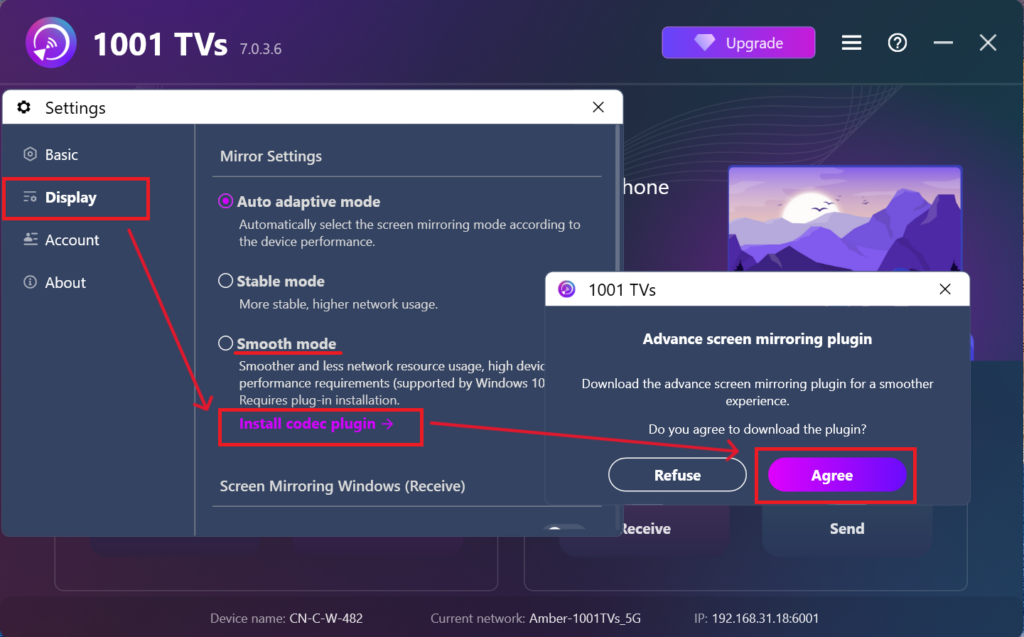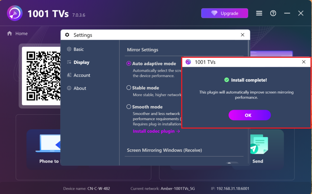 Alternatively, you can manually find and install this plugin later within the app by going to Indstillinger > Display > Mirroring Settings.