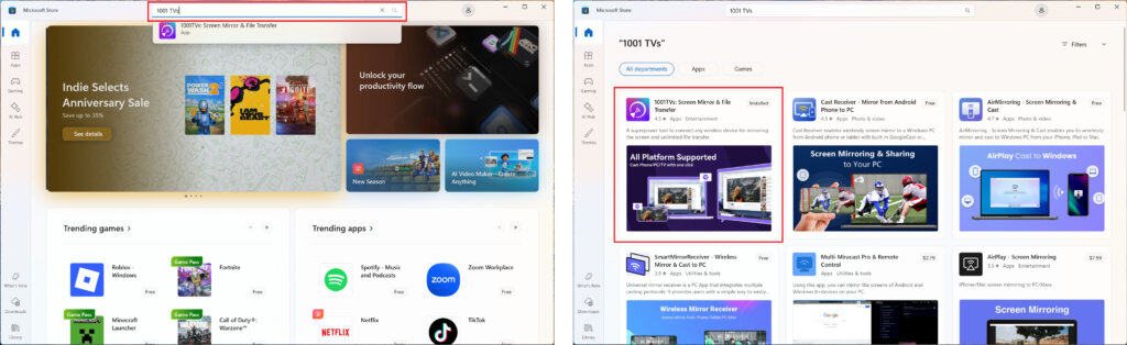 Start den Microsoft Store on your PC, search for "1001 TVs".
