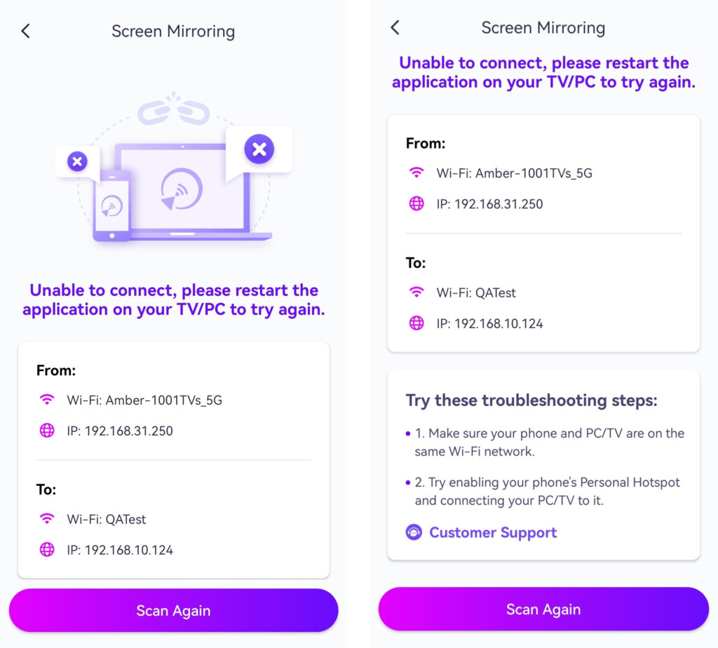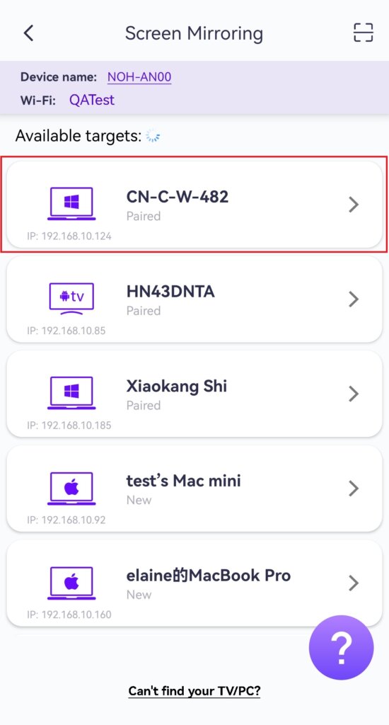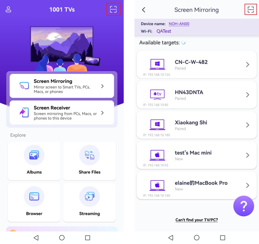 Appen registrerer automatisk enheder som smart-tv'er, tv-bokse og pc'er, der er tilsluttet det samme wi-fi-netværk.