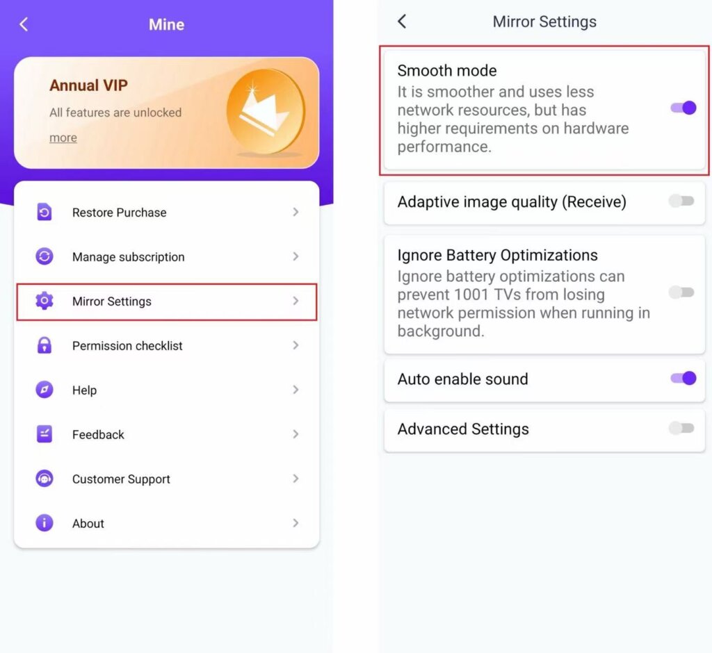Hvis du oplever forsinkelser eller lav opløsning under spejling, kan du prøve at justere indstillingerne for at få en bedre oplevelse.