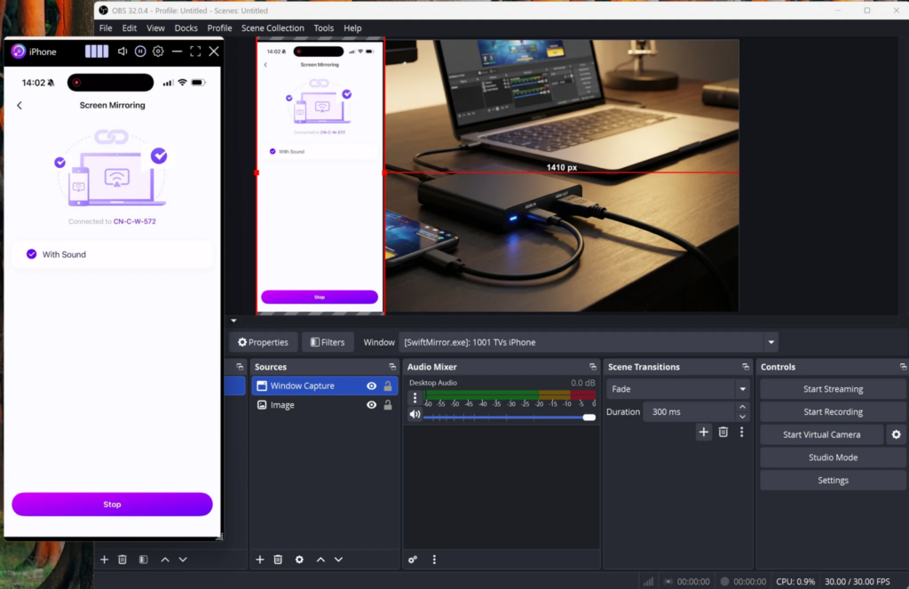 Με το 1001 TVs, μπορείτε εύκολα να αντικατοπτρίζετε την οθόνη του τηλεφώνου σας στον υπολογιστή σας και να καταγράφετε το παράθυρο αντικατοπτρισμού απευθείας μέσα στο OBS Studio για επαγγελματική ροή και εγγραφή.