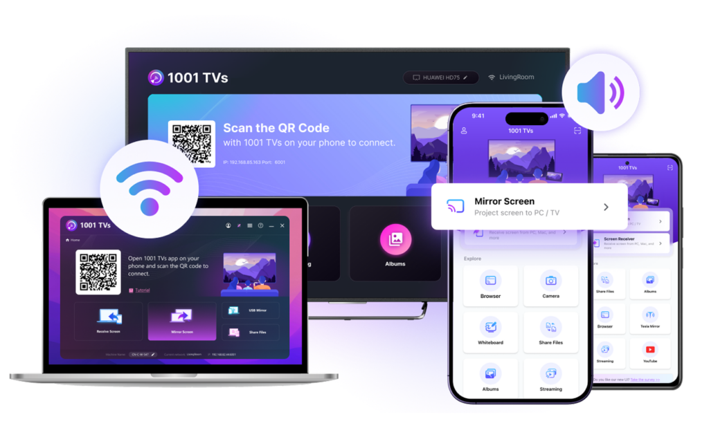 ⬩ No Messy Wires: You don’t need long HDMI cables. 1001 TVs uses αντικατοπτρισμός οθόνης to send your computer screen to a Smart TV wirelessly.