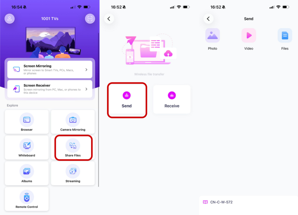 ⬩ Βρείτε τα αρχεία που στείλατε στον υπολογιστή σας κάνοντας κλικ στο “Receive Files”