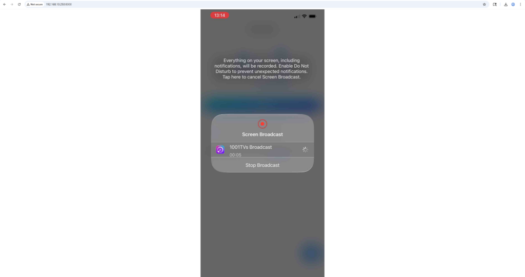 - Tapez "Démarrer” > “Démarrer la diffusion”. Après un compte à rebours de 3 secondes, votre écran apparaît dans le navigateur.