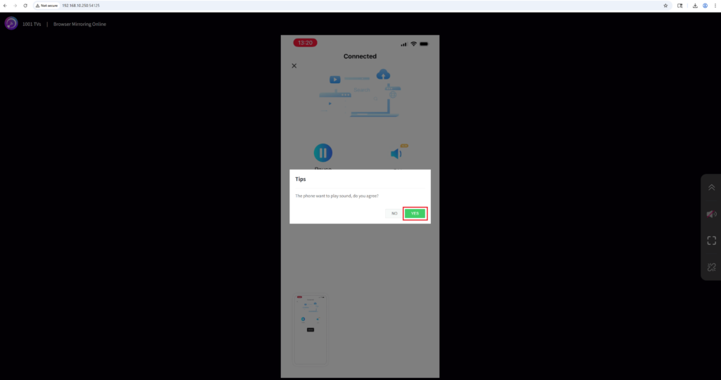 - Cliquez "OUI"sur la page du navigateur pour lancer la lecture du son.