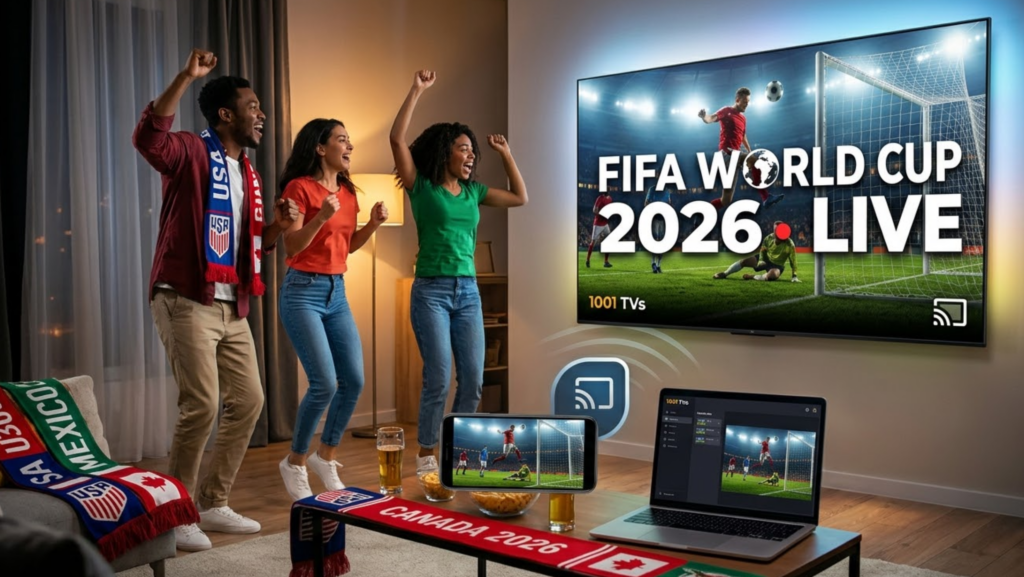 1001 TVs solves this instantly. It’s a screen mirroring app that wirelessly casts any stream from your phone or laptop directly to your TV. No smart TV required, no HDMI cables, no technical setup. Just open your streaming platform, tap to cast, and you’re watching the World Cup on the big screen.