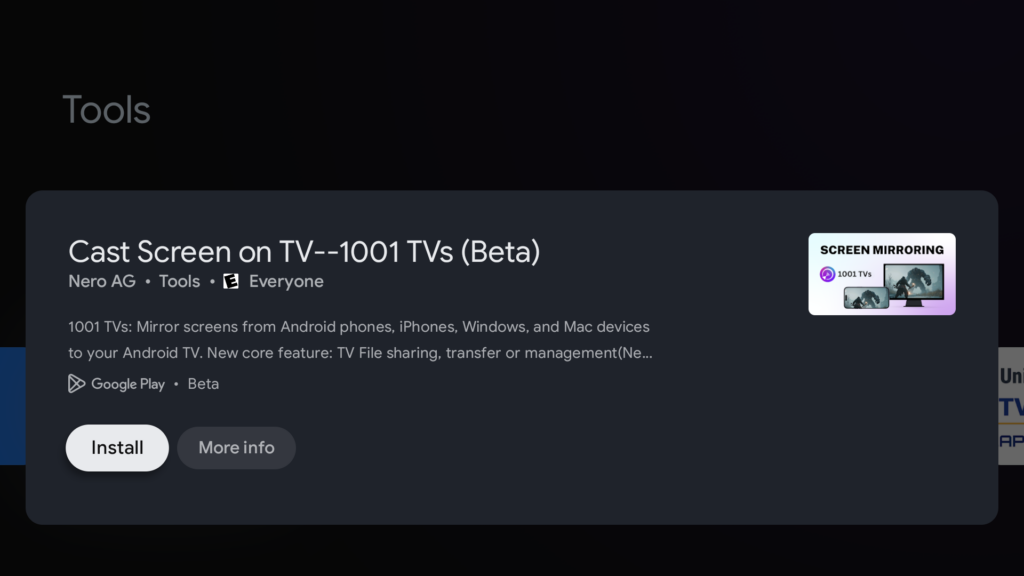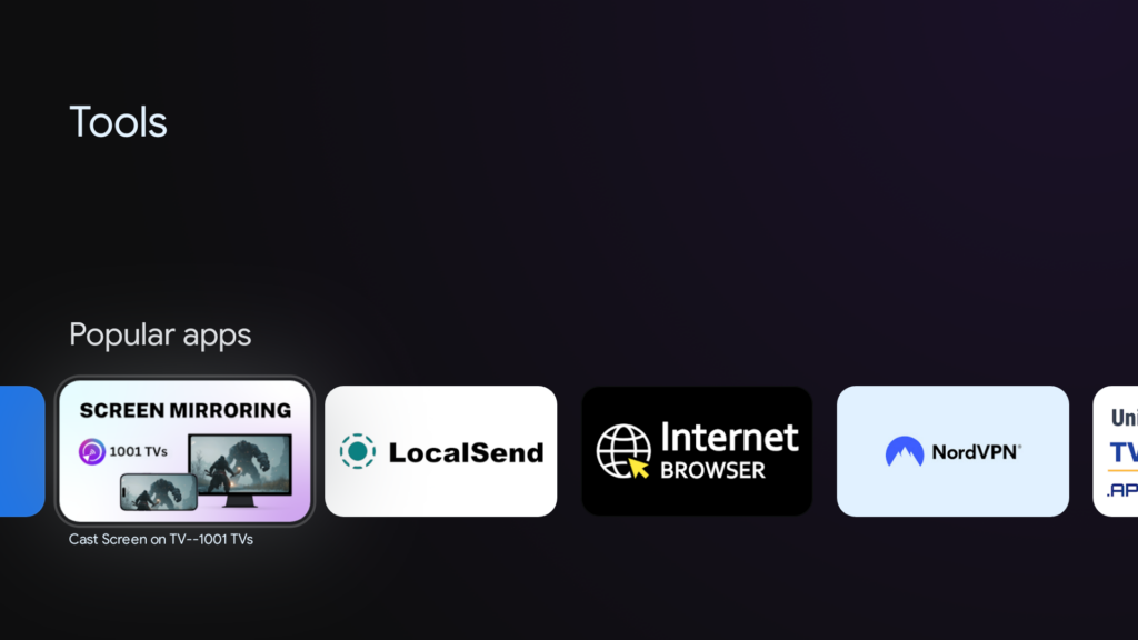 Step 1 — Browse the Tools Section on Your TV or search “1001 TVs” on the Google Play TV
