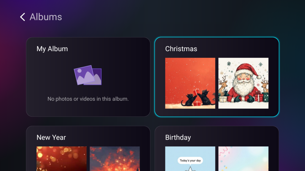 The 1001 TVs TV Version now offers a full collection of free Christmas TV templates, high-quality wallpapers, and 10+ holiday music tracks—all designed to turn any TV into a beautiful seasonal display.