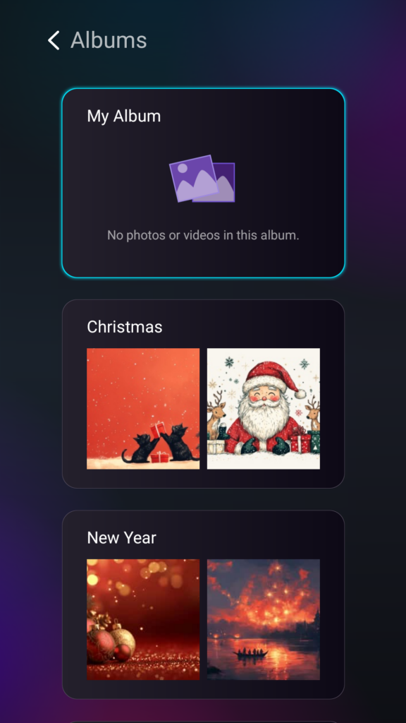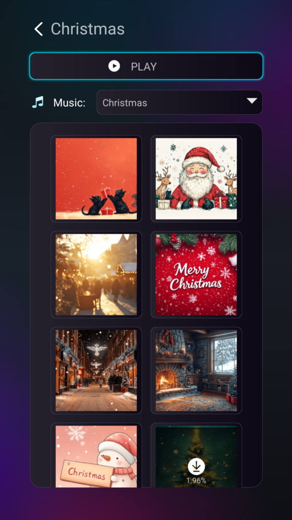 Install the latest version (2.19.20.17) to unlock vertical Christmas wallpapers, portrait templates, and holiday music options.