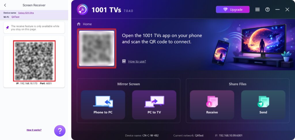 ③ 受信側のデバイスにも1001 TVsをインストールし、開きます。お使いのデバイスに応じて、Android、iPhone、PC、Mac、またはTV用の対応バージョンをインストールしてください。