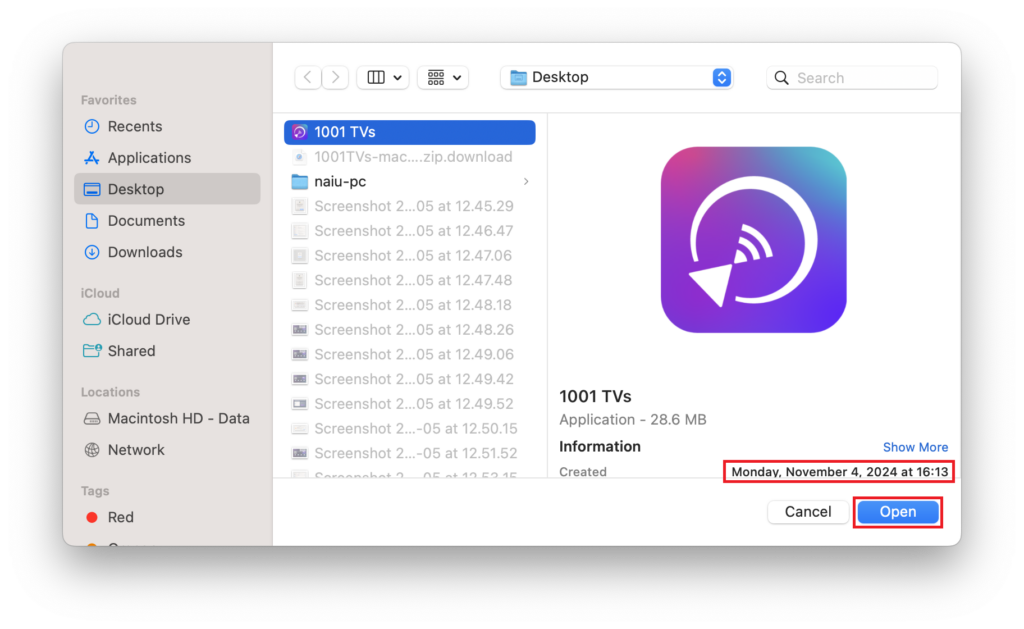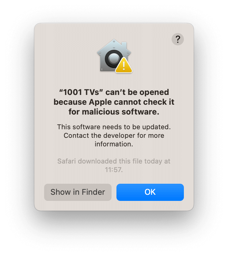 3) Enter your Mac’s login password to allow the requiry and restart the 1001 TVs app.