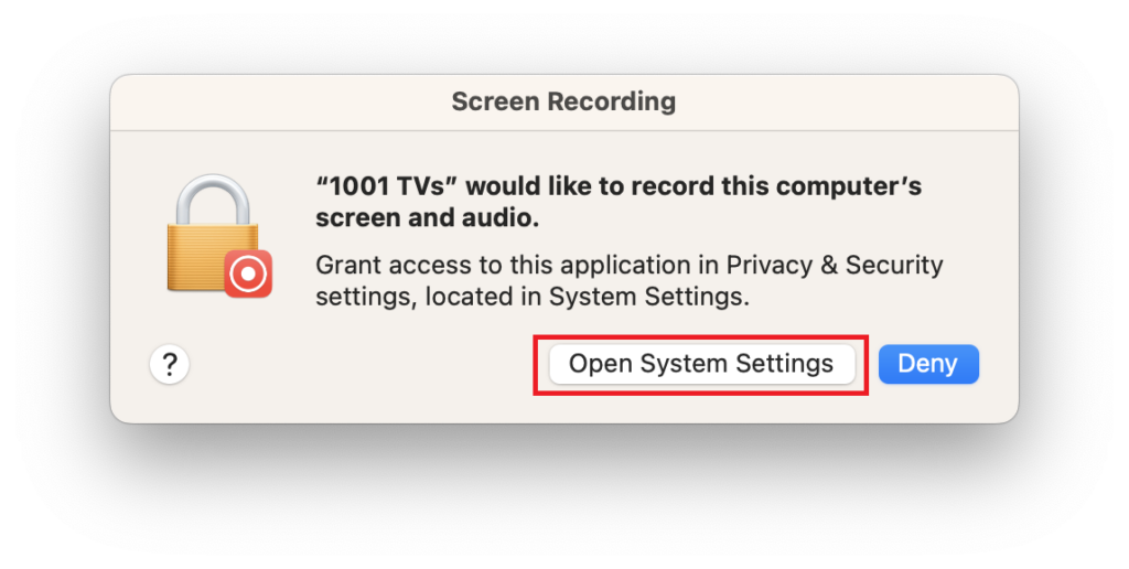 Enable screen recording permissions: