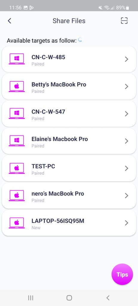 - Als de laatst aangesloten apparaat is beschikbaarDe bestandsoverdracht kan onmiddellijk beginnen.
