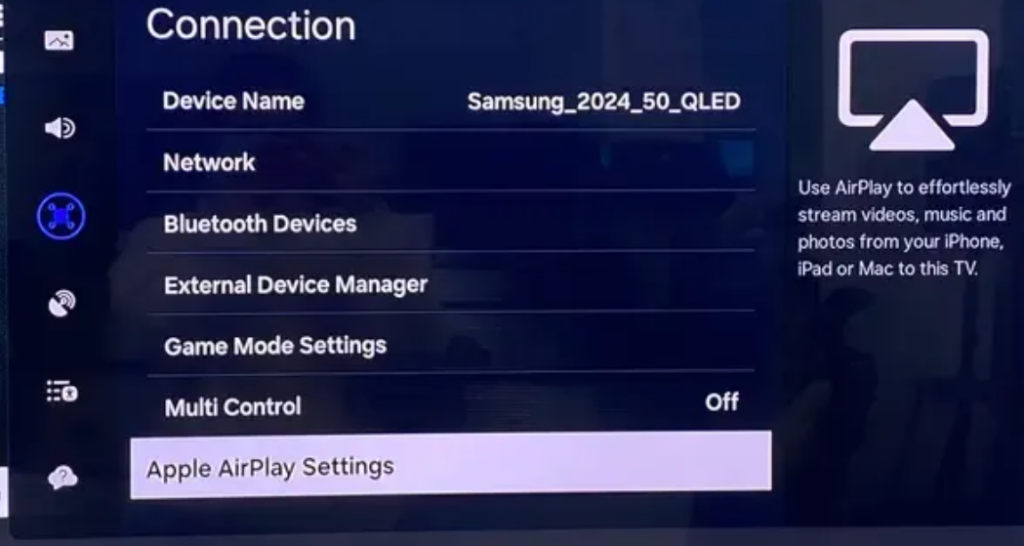 3. Disable AirPlay in your TV’s settings to prevent any device from connecting