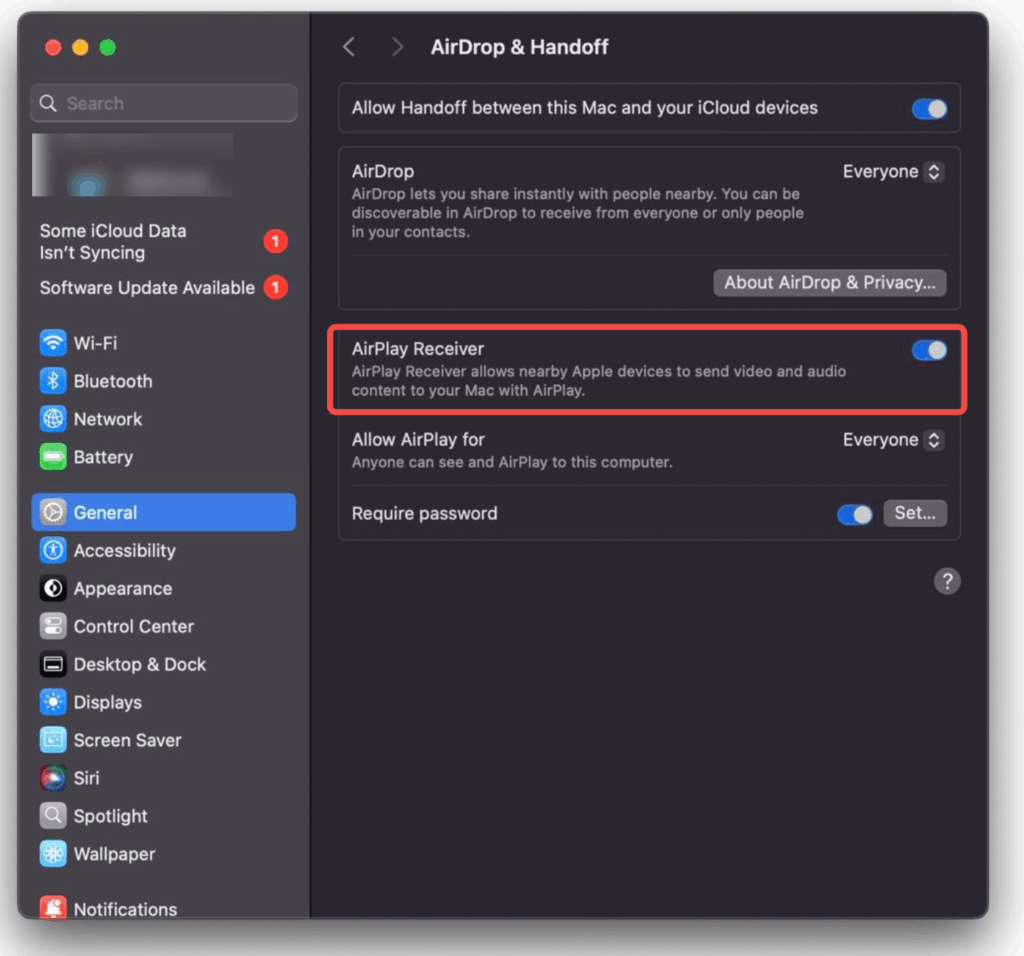 2. Turn off AirPlay Receiver on your Mac if you don’t want other devices casting to it