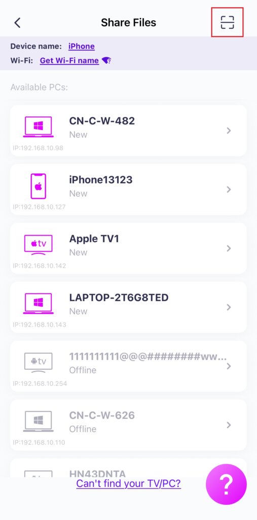 Note: The target device must be online to receive files. If it appears offline, please check your network connection. You can still view files already received on your PC/Mac/TV at any time.