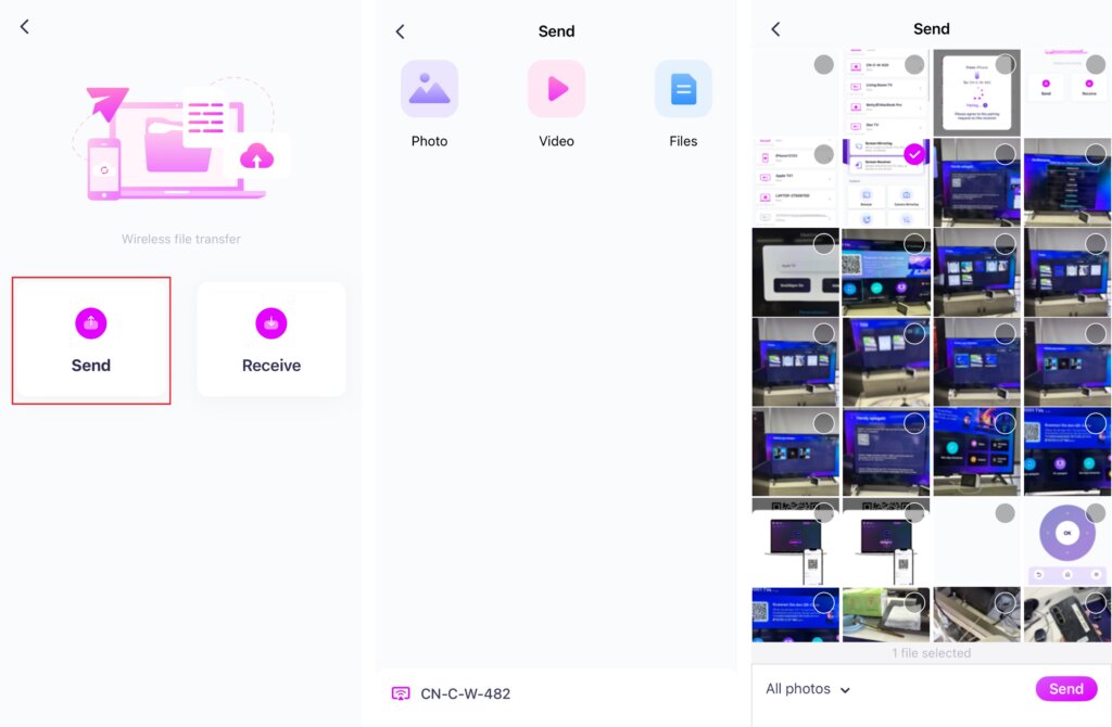 4. Select files to send