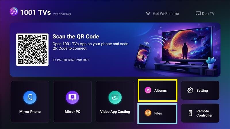 Lançamento 1001 TVs em seu telefone e toque em Compartilhar arquivos > Enviar.