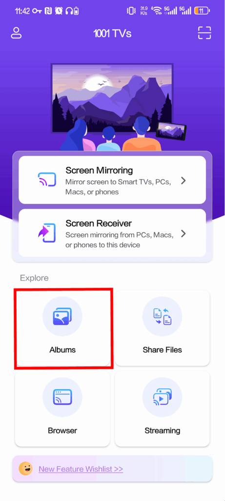 If you’re already used to using 1001 TVs for vertical screen mirroring, you might not know this yet:the Albums feature also supports vertical playback. As long as your TV is mounted in portrait orientation, both photos and videos can be displayed in a very immersive and clear way. Below we’ll show you the full flow:Upload from your phone ➜ Play vertically on the TV 1. On your phone: upload photos/videos to the TV first ❶ Open the 1001 TVs mobile app and tap 〖Albums〗 ❷ On the paired TV card, tap 〖Upload〗 in the bottom-right corner Make sure your TV is online, then choose the TV you want to upload to and tap Upload. ❸ Select the photos or videos you want to upload After…