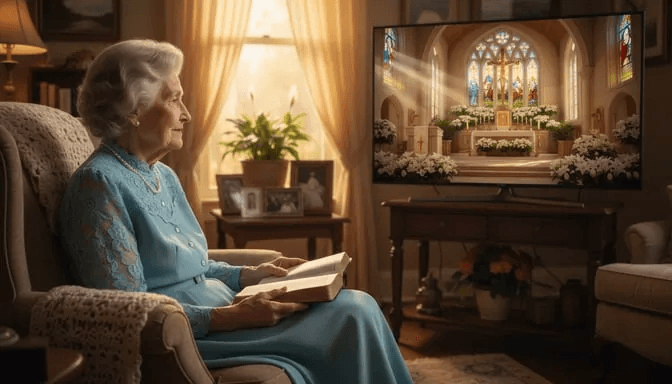 It’s Easter Sunday morning, 6:45 AM. Margaret, 78, sits in her living room dressed in her Sunday best. Her knees won’t let her climb the church steps anymore, but she’s determined to watch the sunrise service.