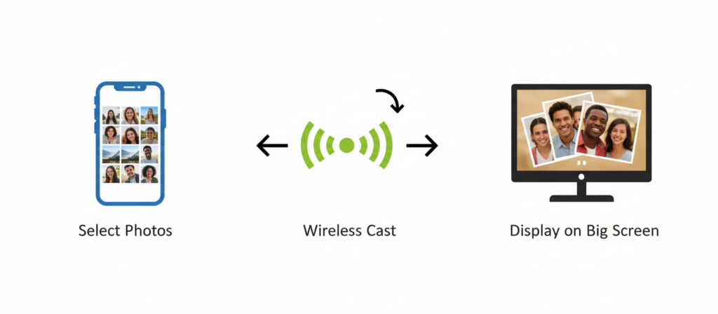 | ⚡ Wireless casting | Send photos instantly from your phone — no cables or USB drives |