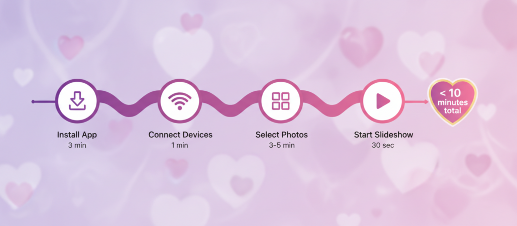 | 🎬 Slideshow mode | Automatic transitions create a flowing romantic atmosphere |