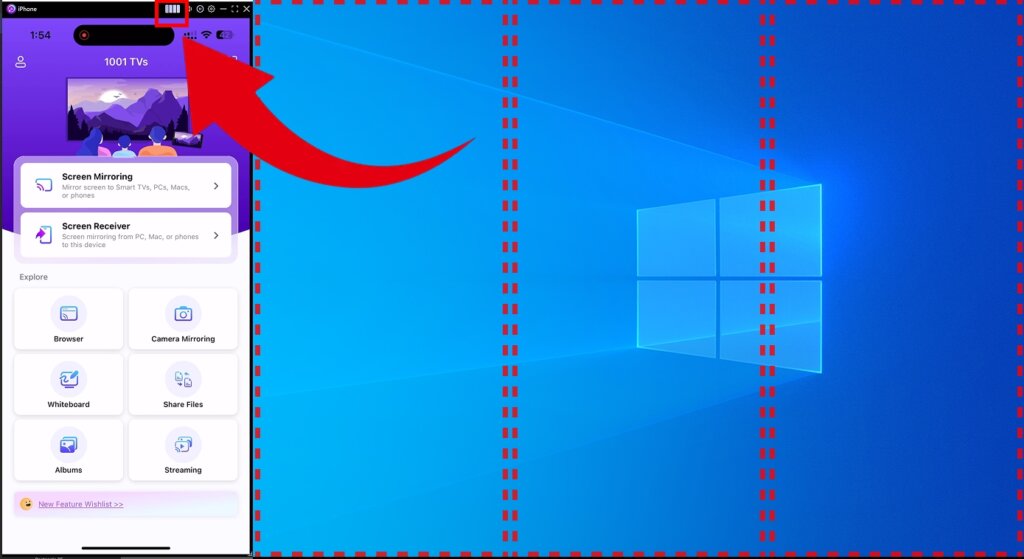 o 1001 TVs masaüstü uygulaması tam ekran görüntüleme, duraklatma, başlık çubuğunu gizleme ve çok cihazlı bölünmüş ekran yayını dahil olmak üzere ekran yayınını doğrudan yayın penceresinden kontrol etmenizi sağlar. Bu eylemler, telefon veya diğer gönderen cihazlar kullanılmadan gerçekleştirilebilir, büyük ekran görüntülemeyi optimize etmeye yardımcı olur ve hem işbirliğine dayalı hem de bireysel kullanım durumlarını destekler.