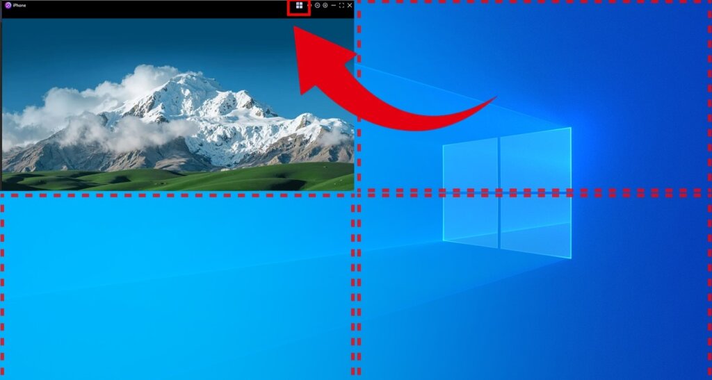 Başarılı bir bağlantıdan sonra dört kare simgesi Ekranı otomatik olarak dört bölüme ayırmak için başlık çubuğundaki.